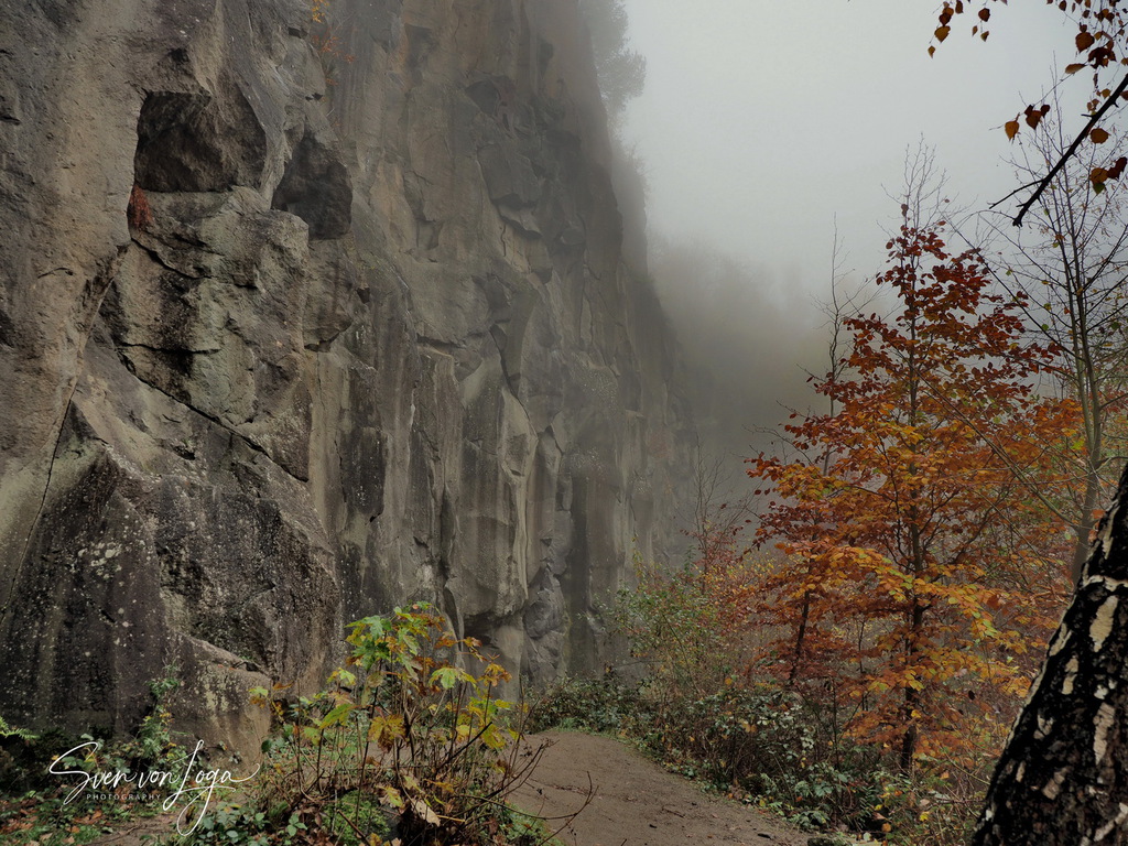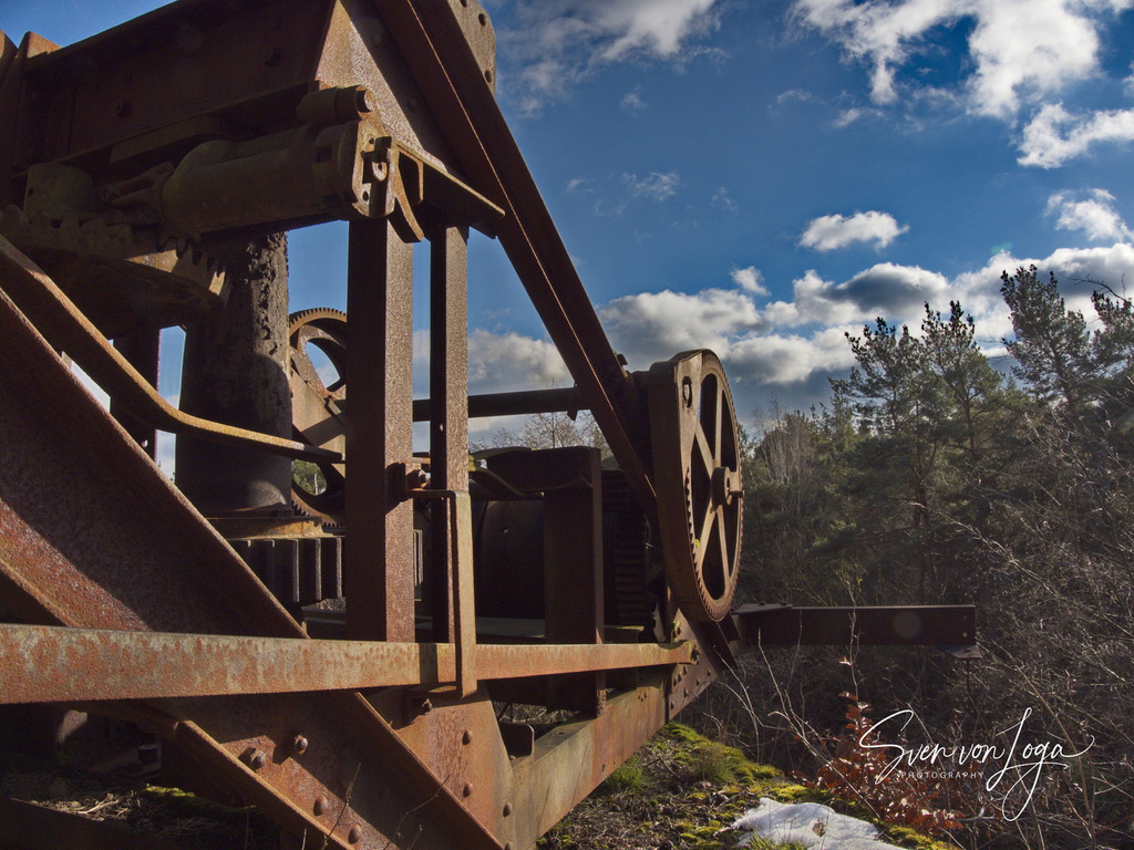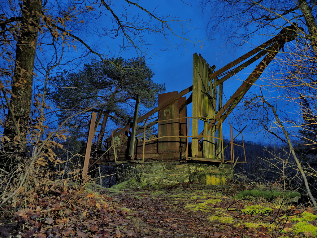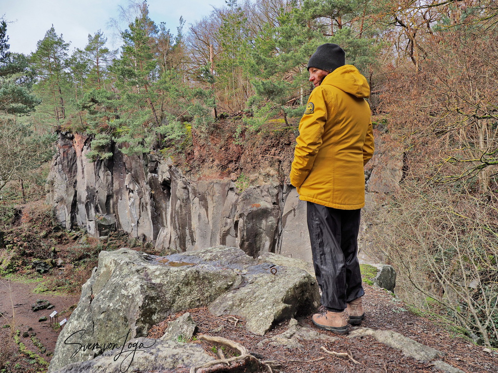 Wir erfahren viel über den Eifelvulkanismus, denn das Bergbaugebiet liegt in einem Lavastrom. Wir sehen Reste des Bergbaus, alte Kräne und verfallene Hütten. Wir klettern ungefährlich zu manchem